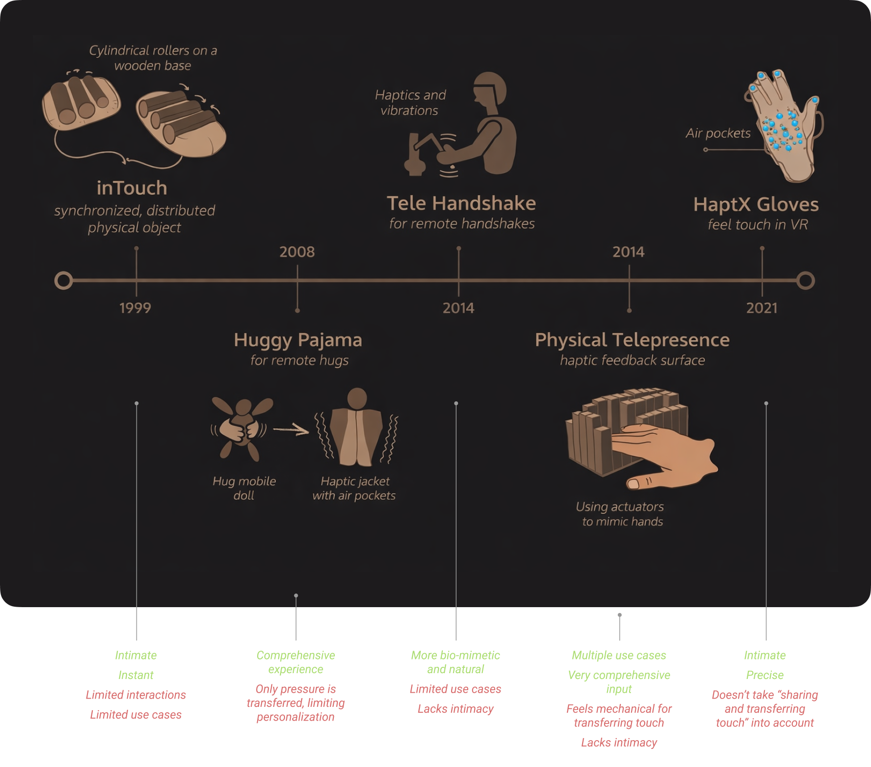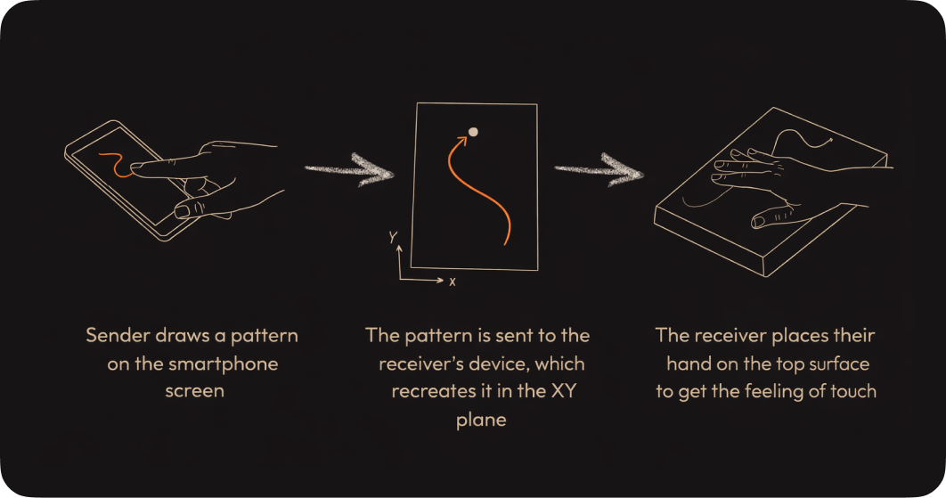 As physical distances between people increase every passing day, ways to connect people remotely satisfy the visual and auditory sensories, but fall short on a crucial front- the intimate feeling of touch.