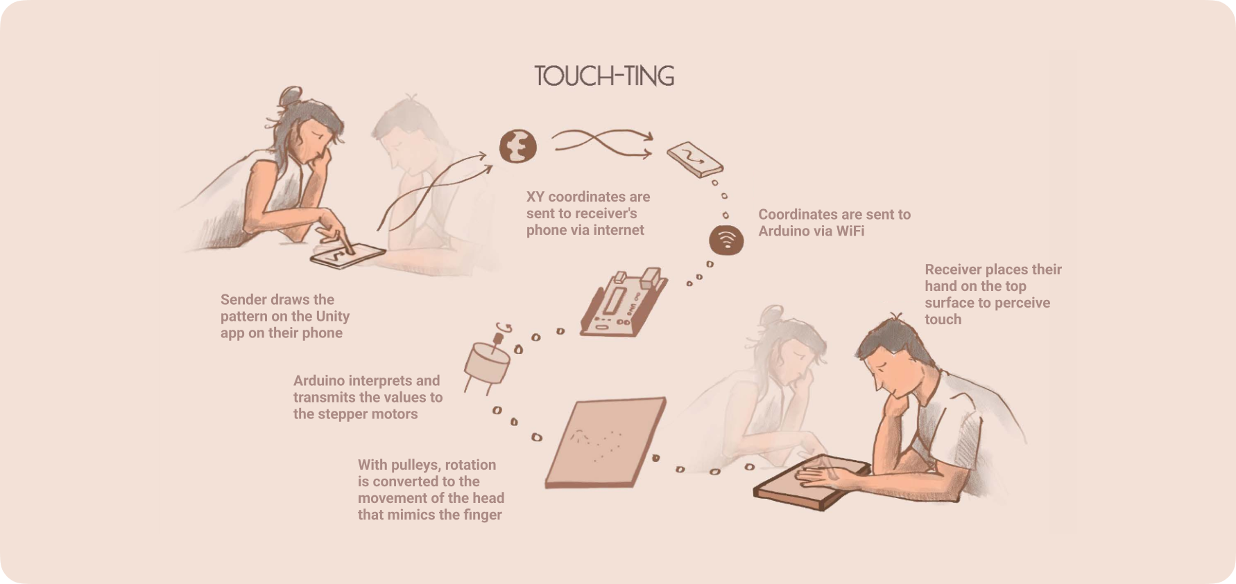 The design process consisted of figuring out the hardware, electronics and the software involved in touch-ting.