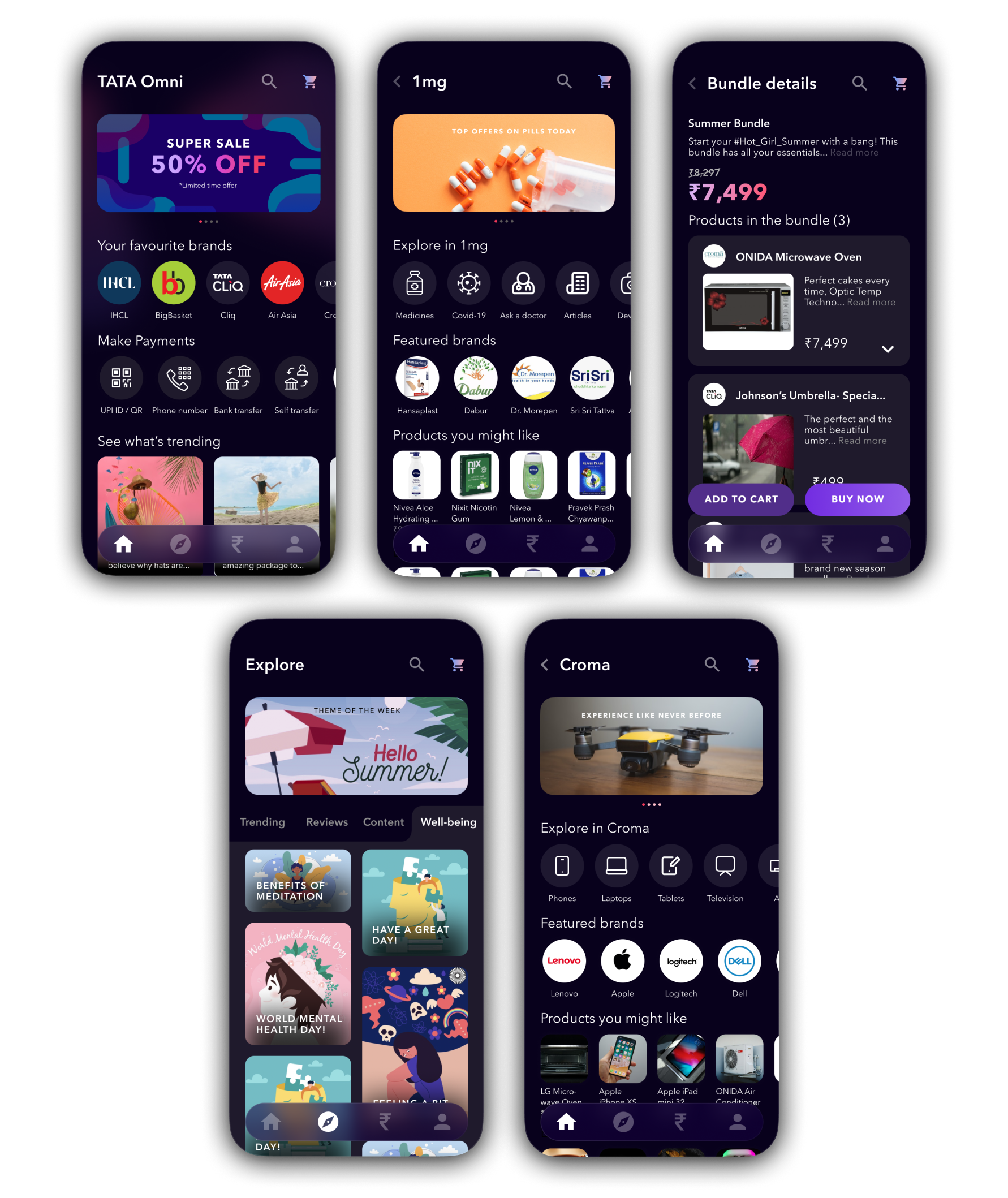 Designed a part of an internship project at TATA Digital, Neu is a super-app that offers products and services from different TATA subsidiaries under a single umbrella. This spans across multiple product categories and services offered by companies like 1mg, Qmin, TATA AIG, Croma and many more.